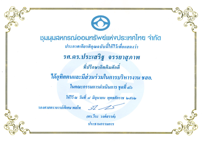 นอกจากนี้ อาจารย์ยังได้รับการยกย่องจากสถาบันการศึกษาและองค์กรวิชาชีพในฐานะศิษย์เก่าดีเด่น ผู้ทำคุณประโยชน์ต่อสังคม และผู้มีบทบาทสำคัญในการพัฒนางานวิชาการและงานสหกรณ์ของประเทศอย่างต่อเนื่อง เกียรติคุณเหล่านี้สะท้อนให้เห็นถึงคุณค่าของการทำงานที่ยึดมั่นในความรู้ ความรับผิดชอบ และการอุทิศตนเพื่อส่วนรวม
