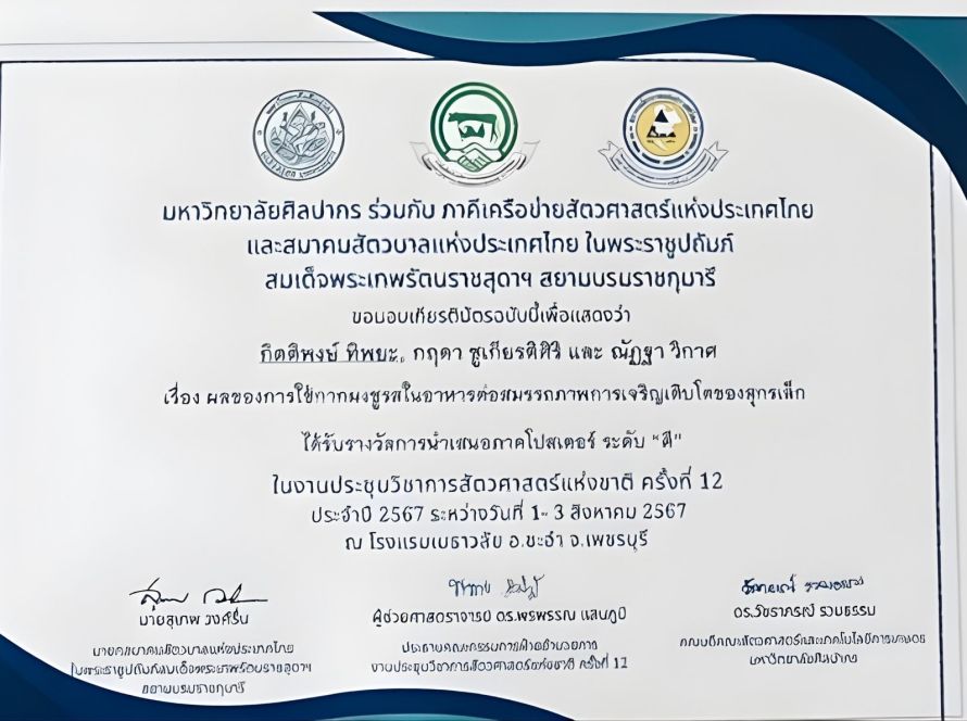 หน่วยงานผู้รับรางวัล : คณะสัตวศาสตร์และเทคโนโลยี-Faculty of Animal Science and Technology