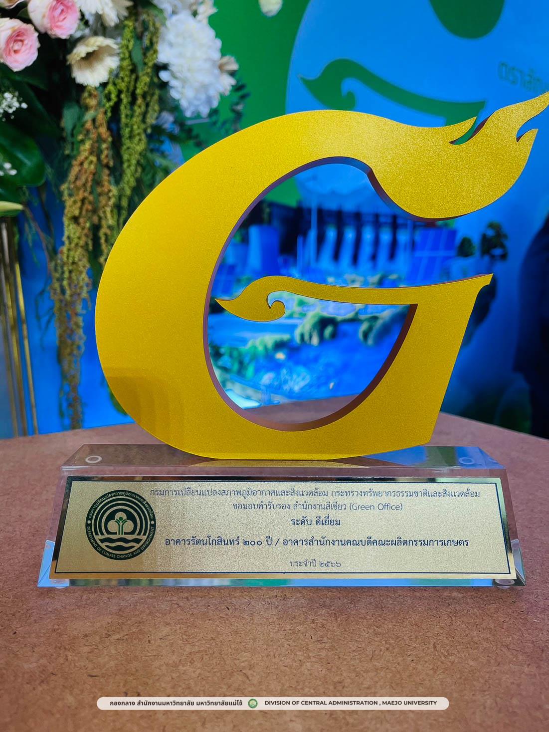 ชื่อรางวัล : รางวัลระดับดีเยี่ยม G ทอง Green Office ระดับประเทศ ปี 2566