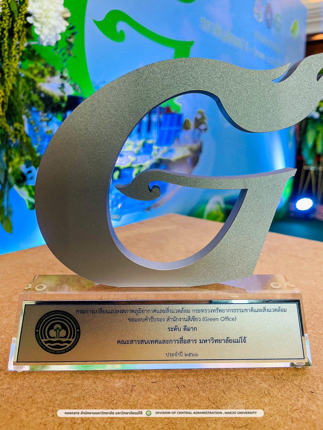 ชื่อ/ข้อมูลรางวัล : โล่รางวัลตราสัญลักษณ์ G-Green (ระดับเงิน) ระดับประเทศ ประจำปี 2566 จากกรมการเปลี่ยนแปลงสภาพภูมิอากาศและสิ่งแวดล้อม กระทรวงทรัพยากรธรรมชาติและสิ่งแวดล้อม