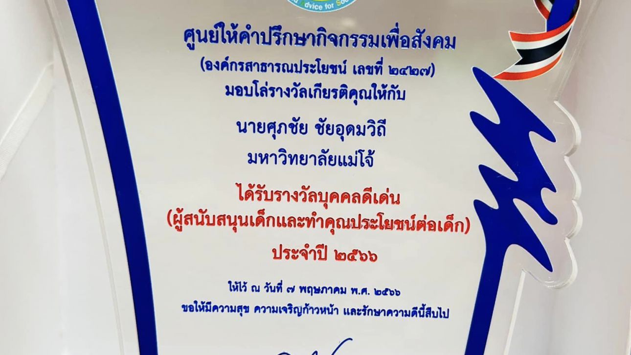 รางวัลบุคคลดีเด่น ปี 2566 “ผู้สนับสนุนเด็กและทำคุณประโยชน์ต่อเด็ก”
